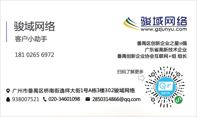 廣州駿域網(wǎng)絡(luò)科技有限公司成立于2005年,是一支由眾多具有多年實(shí)踐經(jīng)驗(yàn)的專業(yè)人士組成的高新技術(shù)團(tuán)隊(duì),專為企業(yè)提供網(wǎng)站建設(shè)、全網(wǎng)營銷、郵箱等服務(wù),我們擁有嚴(yán)謹(jǐn)?shù)某绦蜷_發(fā)人員、專業(yè)的美工設(shè)計(jì)、隨時為您效勞的售后服務(wù)人員,團(tuán)隊(duì)人數(shù)達(dá)一百多人。目前我們已經(jīng)榮幸的為廣州眾多知名企業(yè)提供了包括網(wǎng)站建設(shè)、手機(jī)網(wǎng)站、小程序、企業(yè)軟件開發(fā)等多種基于互聯(lián)網(wǎng)技術(shù)的服務(wù)。 通過長期積累,駿域網(wǎng)絡(luò)目前已經(jīng)擁有50000多家客戶。